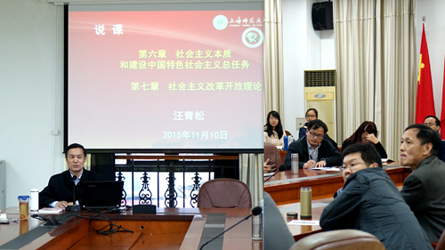 此外,公开课前,教务处、马克思主义学院在奉贤校区行政楼一楼会议室组织说课、研讨活动,活动由教务处主持。汪青松教授就本次公开课的教学内容、教学方法、学情学法、流程设计、教学理念等做了详细说明,教务处、马克思主义学院教师和部分学生对此进行了全面深入研讨。