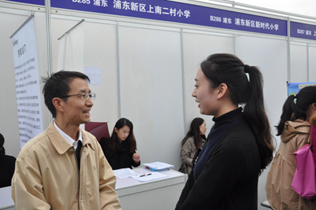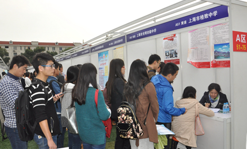 针对严峻的就业形势,尤其是本市师资市场长期存在的结构性矛盾,学工部主动对接本市师资市场,将17个区县的中小幼学校“请”进校门,为毕业生提供师资岗位;同时,邀请江苏、浙江、重庆、山东等省市的学校来校招聘,为外省市师范毕业生提供更加广阔的师资就业市场。据统计,参加此次招聘会的用人单位有144所幼儿园、235所小学、235所中学、90所九年一贯制学校、36家培训机构和53所各类职业技术学校、特殊教育学校。
