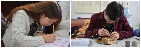 社团还结合教学实际,推出了“导师制”教学模式。在寒暑假定期展开社员集训,每学期组织社员实践考察。现任秋石印社社长晋泱坤同学说:“秋石印社是一个极具人文关怀的社团,未来我们希望能通过公益的方式让更多的人认识篆刻,弘扬我们中国的传统艺术。”
