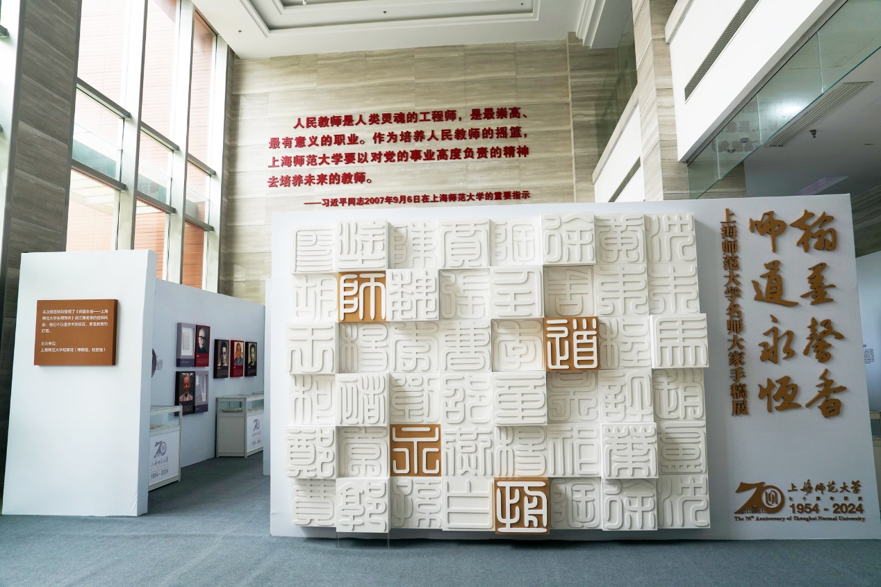 10月13日上午,《翰墨馨香 师道永恒——上海师范大学名师大家手稿展》在东部艺苑楼大厅拉开帷幕,众师生、校友及各界来宾共同见证这一激动人心的时刻。