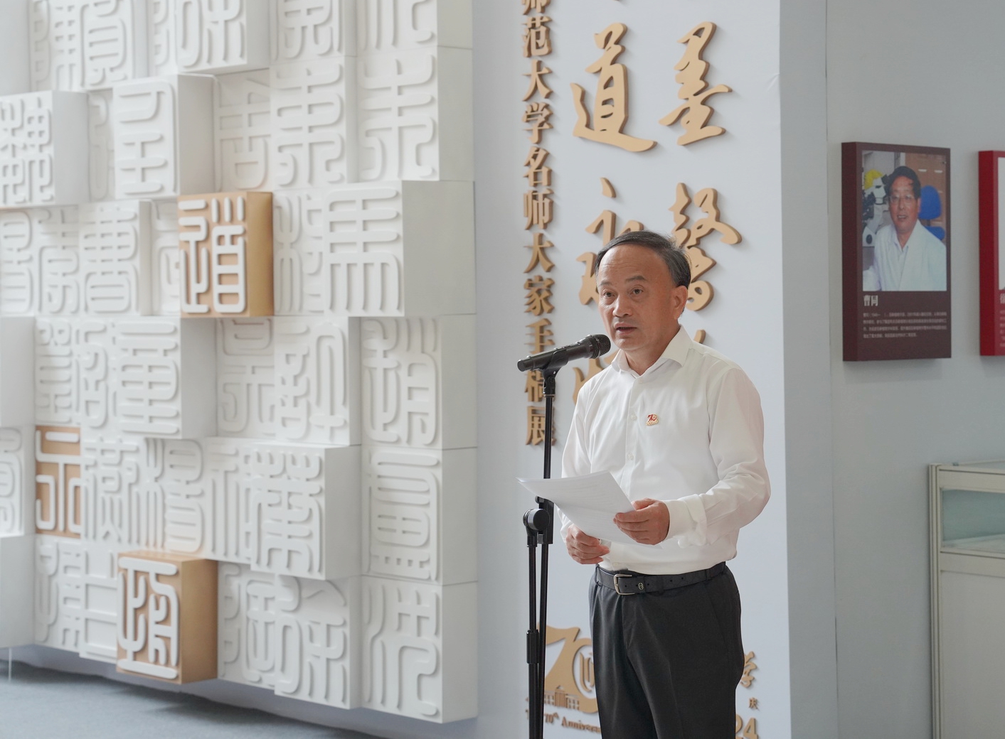 副校长蒋明军在开幕式上发表了热情洋溢的讲话。他指出,在庆祝建校70周年的特别时刻,举办这样一场手稿展,不仅是对那些曾经在教育领域辛勤耕耘、贡献卓越的前辈们智慧和努力的最高敬意,更是对教育家精神的深刻诠释和对教育事业的深情礼赞。这些珍贵的手稿,作为名师大家教学和学术探索的直接见证,凝聚了他们的智慧与心血,记录了岁月的流转与变迁。它们不仅是历史的见证者,更是连接过去与未来的桥梁,承载着学校文脉和师道永恒的精神。它们的展出将激励我们继续传承和弘扬师大的优良传统,以更加坚定和昂扬的姿态,坚守教师教育初心,勇担教育强国建设使命,迈向更加辉煌的未来。