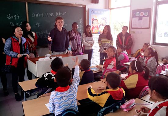 期盼许久的小学生用欢呼和掌声欢迎留学生的到来。很多第一次参加活动的留学生被孩子们的热情“吓懵”了;有经验的留学生马上用汉语打招呼,得到了孩子们的积极回应。教室很快成了语言学习的小课堂,留学生们教授不同语言的常用问候语、各国的民歌童谣,令小学生们感到新鲜有趣,学习热情高涨。每个孩子还收到了留学生们带来的各种小礼物。短短一节课的时间,留学生和孩子们已然成了好朋友。