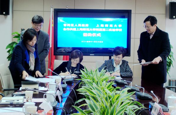 11月25日,学校与普陀区人民政府合作共建上海师范大学附属第二实验学校续约签字仪式举行,普陀区人民政府副区长钱雨晴、区教育党工委副书记、教育局局长范以纲、区办公室副主任陶峰,我校副校长柯勤飞,基础教育中心负责人施斌,附属第二实验学校校长方蕾等参加。柯勤飞和钱雨晴代表合作双方在共建协议上签字。