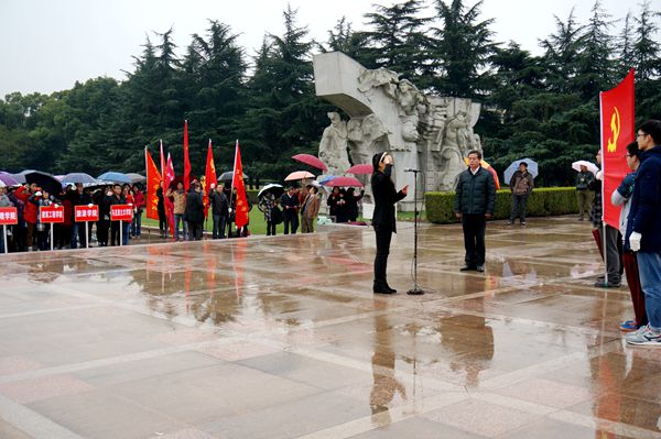 下午,预备党员冒雨在龙华烈士陵园进行了庄严的入党宣誓。各学院党委(总支)书记、副书记、组织员和学习班随班班主任出席了入党宣誓仪式。“全国师德楷模”、“全国优秀教师”、“全国十大杰出志愿者”、“全国高校优秀辅导员”、“全国高校辅导员年度人物”、“中国教育年度新闻人物”、“全国职工职业道德建设先进个人”谢晋影视艺术学院党委副书记、副院长孙雅艳同志带领预备党员们面向党旗庄严宣誓。