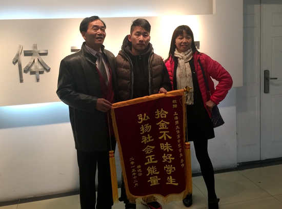 12月15日,李伟正在学校图书馆写论文时接到体育学院老师的来电。在院办他再次见到了满怀感激之情前来送锦旗、递交表扬信的失主……李伟平静地对记者说,一件小事,随手之举。想必无论哪位大学生遇到这样的事,都会为失主着想,急他人所急,及时将物品归还失主的。这是我们大学生都会做,也应该做的!质朴无华的语言,透露出李伟高洁的内心。李伟平凡的举动,给了我们不平凡的感动。他的嘉言懿行,也折射出上海师大青年学子的高风亮节和文明风貌!