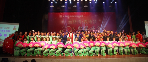 两千年前,驼铃叮当,航帆高扬。两千年后,霓虹闪耀,汉语飞扬。12月24日,“丝路情•中国梦”2016年对外汉语学院新年晚会在上海师范大学徐汇校区东部礼堂正式拉开帷幕。副校长柯勤飞,以及宣传部、国际交流处、教务处、学工部、团委等部处负责人出席晚会。场外的细雨霏霏,更是映衬出了场内的气氛热烈,东部礼堂内宾朋满座,欢声笑语。