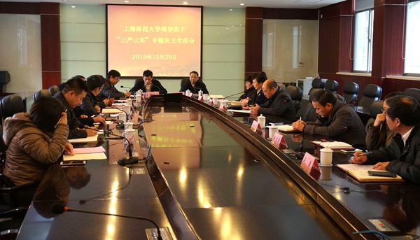 滕建勇介绍了学校领导班子“三严三实”专题民主生活会准备工作情况。为了开好民主生活会,校党委精心制定《上海师范大学领导班子2015年专题民主生活会工作方案》,认真学习相关文件精神,巩固“三严三实”专题教育学习研讨成果。组织了三个工作组,深入到各二级单位,上门听取了104位中层党政正职、党代会代表、教代会代表、教师代表等各类群体的意见,同时,发放了160份书面征求意见表,广泛征求意见和建议。在梳理意见的基础上,学校领导班子按照“三必谈”的要求开展了深入的谈心活动,通过谈心,达到了沟通思想、增进团结、共同提高的目的。12月25日,校党委常委会专题研究了领导班子对照检查材料,分析了存在的主要问题及原因,初步明确了整改方向。