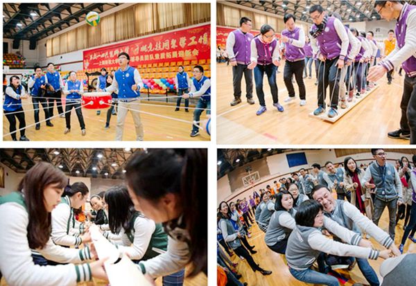 为加强学院之间、学院与部门之间的沟通交流,本次团队拓展活动组成5支队伍,每支队伍都由学院辅导员、学工系统职能部门老师组成。活动中,各支队伍团结协作,默契配合,进行了“风采展示”“轻舞飞扬”“一鼓作气”“能量传输”“大脚板”等项目比赛,良好的精神风貌凝聚了满满的正能量。“文武双全辅导员、师大代有才人出”“师大学工是一家、竞技场上增感情、明年工作更卖力、请为我们点个赞”“思蕴苍穹、导向成功、文苑英华、政通师大”等口号展示了融合的特色、团队的士气。现场气氛热烈,加油欢呼声此起彼伏。