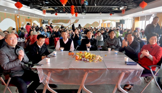 团拜会场热烈、喜庆、祥和。与会校领导和教职工欣赏了精彩的文艺演出:有音乐学院学生送来的男女生独唱,手风琴、笛子、古筝演奏,有在职教师带来的男声独唱,有退休教师精彩的舞蹈和小组唱,有校京剧雅韵社成员送上的京剧演唱。大家在热情欢快、喜气洋洋的氛围中畅叙友情,共话发展,喜迎新春。