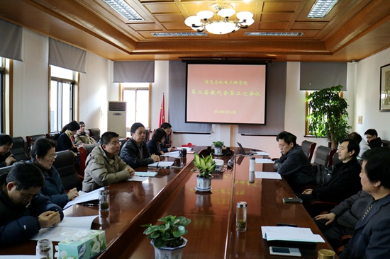 3月16日下午,信息与机电工程学院第二届教代会第二次会议在奉贤校区学院会议室顺利召开。学院全体教代会正式代表及列席代表出席,校工会常务副主席胡志民到会并致辞。学院工会主席茅红伟主持会议。