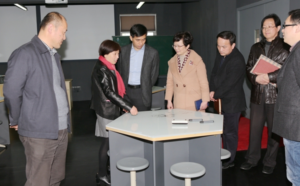 在实验学校浦东东明路校区,滕建勇一行重点参观了创新实验楼,包括现代科技体验中心、数学建模实验室、TI教室等,仔细了解了互动空间(3D影院、互动教学、视频墙)、最新技术的互动体验等功能,并观看了3D影院测试视频,校长徐红简要介绍了实验学校从上海师大一个实验项目、两个班级、到上海市示范性实验性学校、全国独此一家的发展历程。