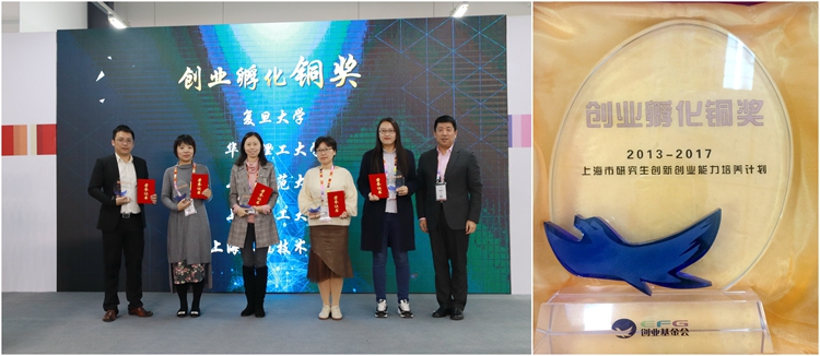 11月17日,上海市研究生创新创业能力培养计划专题活动——天使走进实验室在上海国际时尚中心C会场成功举办。本次活动由上海市学位办和上海市大学生科技创业基金会主办,是上海市研究生创新创业能力培养计划的重要活动。会上颁发了上海市研究生创新创业孵化奖项,我校荣获上海市研究生创业孵化铜奖。