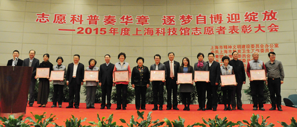 3月26日,“上海科技馆志愿者表彰大会”在上海科技馆召开。上海科技馆理事长、科普教育基金会理事长左焕琛,市教卫工作党委副书记、市教委副主任高德毅,上海科技馆党委书记王莲华,上海市青少年服务和维权保护办公室、上海市文明办志愿服务工作处、团市委社会工作部、市教委工作党委宣传处等相关单位代表出席表彰大会。