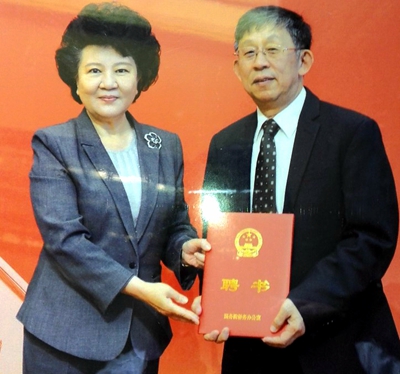 国务院侨务办公室主任裘援平为受聘专家颁发了聘书。