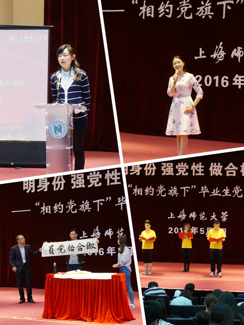 毕业生党员代表以不同的形式表达了对母校的感激之情,对未来生活的憧憬。人文与传播学院 2012级“世承班”学生张倩芸作为毕业生党员代表交流发言,感谢母校的精心培养,音乐学院2012级本科生党支部书记张晨艳动情演唱《问春》,表达对未来的祝愿,美术学院2012级书画本科班卞本正现场书法表演“感恩母校,做合格党员!”,谢晋影视艺术学院播音主持专业王然、广编专业沈苑青、表演专业洪波激情朗诵《党啊,我们为你歌唱》,表达了对党的真挚情感。