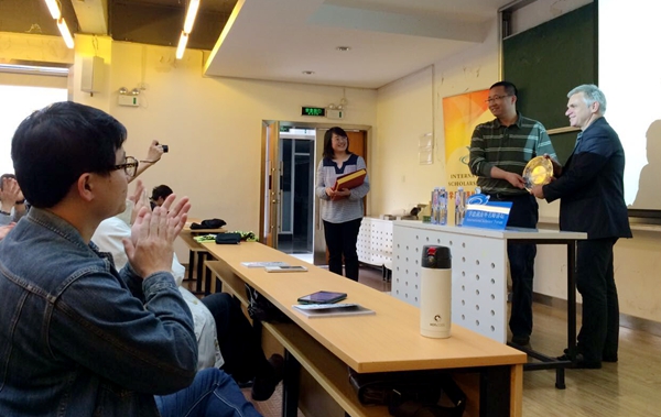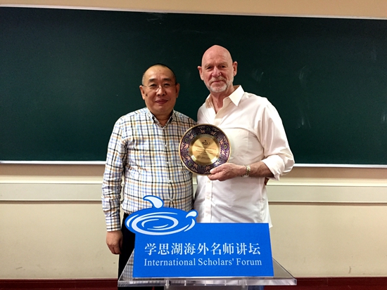 讲座结束后,我校商学院院长茆训诚向罗格教授颁发了“学思湖海外名师讲坛”荣誉奖牌。