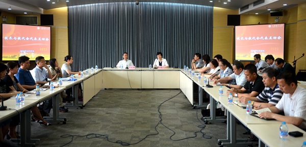6月22日,校工会召开校长与教代会代表互动会,校领导朱自强、柯勤飞以及相关部门负责人出席会议,围绕学校中心工作,与30位校教代会代表团团长及部分代表进行面对面互动交流。副校长、校工会主席柯勤飞主持会议。