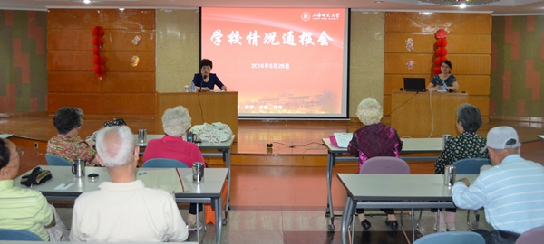 今年是学校“十三五”规划的开局之年,也是学校综合改革的启动之年,为了让老同志更加深入了解学校的重点工作, 6月28日,校党委副书记、纪委书记秦莉萍向全体老干部通报了学校情况。