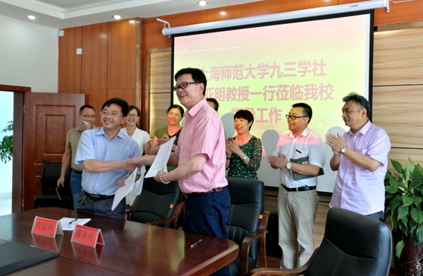 双方商定在教师培养、课题研究、课程和专业建设等方面开展共建合作项目,并签署了《九三学社上海师范大学委员会与九三学社黔南民族师范学院委员会帮扶共建合作项目协议书》。会后,董亚明一行分别赴相关二级学院开展学术报告,并就课题研究、学科建设、专业发展等开展进一步交流和探讨。