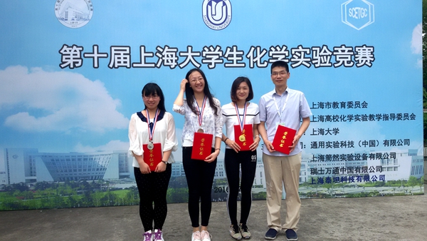 近日,从第十届上海大学生化学实验竞赛暨化学实验教学与实验室建设研讨会上传来喜讯:在7月8日—10日于上海大学(宝山校区)举行的化学实验竞赛中(理论笔试和实验操作),我校被随机抽中的2013级化学系学生杨洁、钱静艳、杨振懿与来自上海的14所高校(上海交大、华东理工、同济大学、东华大学、华东师大、上海大学等)以及南京大学、浙江大学和中国科技大学的共54名学生现场比拼化学实验理论与操作技能,我校同学全部获奖。其中,杨洁荣获一等奖,钱静艳荣获二等奖,杨振懿获得三等奖。这是我校学生在连续十届的上海大学生化学实验竞赛中第六次荣获一等奖。同时,由于我校教师张雷在多年的上海大学生化学实验竞赛活动中出色的组织、指导、实验室建设及实验教学改革等方面的表现,被评为2016年度上海大学生化学实验竞赛优秀指导教师。
