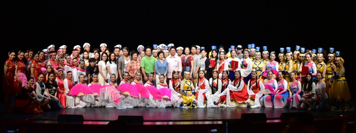 在本学期教学实践结束之际,舞蹈系举办了首届“‘师大杯’上海社区舞蹈展演暨学生实践教学成果展示”,搭建起各社区成员汇聚一堂,展示舞蹈风采的平台,同时也检验了学生的教学成果和团队组织能力,为今后走向社会、服务社会积累宝贵的经验。舞蹈专业2013级全体学生担任此次展演的辅导老师,来自全市7个区县10个街镇的文艺团队共130余位舞蹈队员参加了展演。