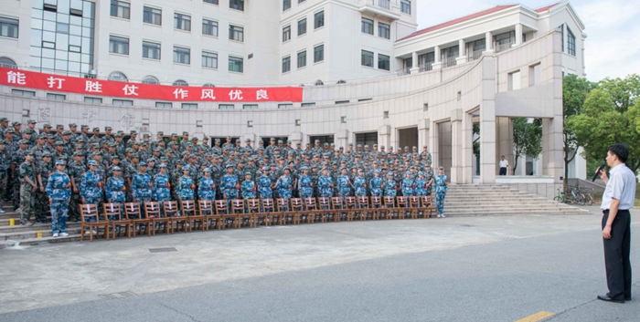 在图书馆前的慰问仪式上,军训师师长、上海警备区海防二旅副旅长彭瑞林代表全体承训教官对校领导的亲切慰问表示敬意,对围绕军训所开展的思想教育和引导工作给予肯定,对官兵生活后勤的贴心保障表示感谢,他要求全体官兵高标准、高质量圆满完成军训任务。