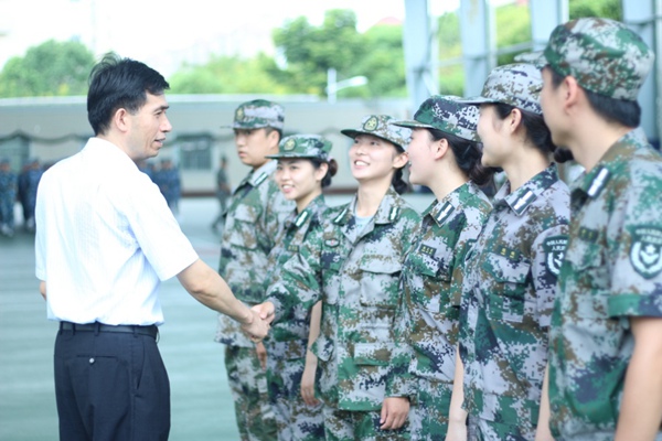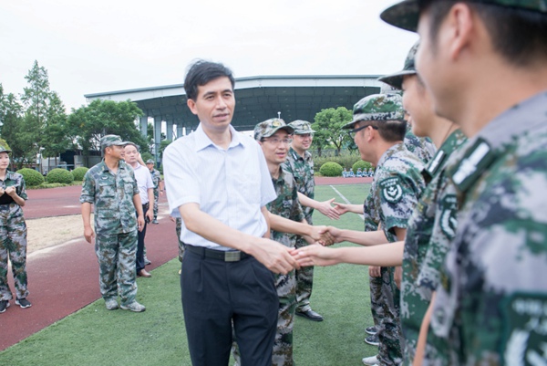 9月5日,校党委书记滕建勇,党委副书记、副校长葛卫华,副校长张峥嵘等领导亲切看望慰问2016级新生军训承训教官、指导员及参训学生,相关职能部门负责人陪同。