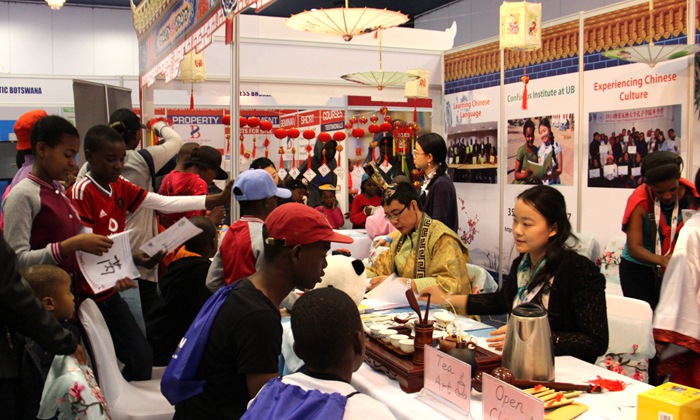 此前,博茨瓦纳大学孔子学院还以“2016博茨瓦纳博览会”为平台,以“学习中国语言,体验中国文化”为主题,开展为期七天的“中国文化周”活动。展台布置将当地的博茨蓝和中国传统文化元素结合在一起,加入了油纸伞、宫灯、回廊贴画等中国传统文化装饰物。中方老师和当地学生志愿者一起,展示书法、茶艺、民族服饰和民族乐器等,还现场教授中国剪纸,彩绘脸谱,开展了丰富生动的汉语公开课。此次活动吸引了大量当地民众参与其中,现场气氛热烈、欢快,洋溢着浓浓的中国文化味道,当地民众深深地体会到了汉语的乐趣和中国文化的源远流长 。