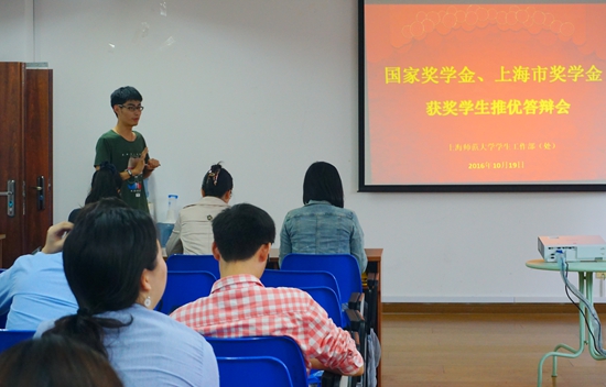 10月19日下午,2016年度校“榜样的力量”宣讲团推优选拔活动在奉贤校区大学生活动中心举行。根据要求,各学院从2015-2016学年国家奖学金和上海市奖学金拟获奖者中推荐在道德风尚、学术研究、学科竞赛、创新发明、社会实践、社会工作、体育竞赛、文艺比赛等方面表现特别优秀的典型代表参与本次选拔。