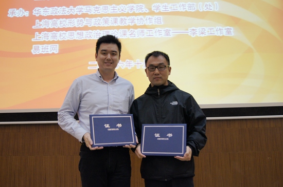 10月28日,2016年上海高校“形势与政策”课教学展示决赛在华东政法大学举行。来自复旦大学、上海交通大学、同济大学和我校的20名优秀教师进入决赛,经过现场展示,我校教育学院辅导员胡斌老师、商学院辅导员钱晋老师脱颖而出,分别荣获二等奖和优胜奖。