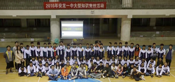 两个月的实习期间,为了丰富高中生的课余生活,支教学生们还为安龙一中的学生们组织举办了千元计划—— “王者之师,一站到底”大型知识竞技活动。本次活动采取初赛、复赛和决赛三轮赛制。10月22日,决赛在安龙一中体育馆进行。决赛共有通过层层选拔的64名学生参加,观赛同学约有500余人。经过了形式丰富多彩的团体赛和紧张激烈的个人赛,最终诞生了团体赛前三名和最佳组织奖,个人赛决出前三名及优秀奖3名。活动结束后,安龙一中现任校长及团委老师给予了高度的评价。