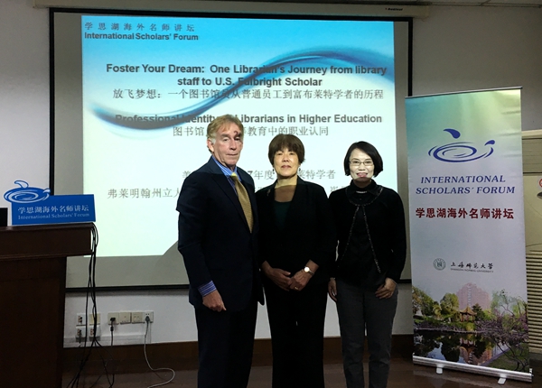 11月16日,2016-2017年度美国富布莱特学者、美国弗莱明翰州立大学(Framingham State University)图书馆学术资源与馆藏主任崔景信(Shin Freedman)教授应邀作客“学思湖海外名师讲坛”,为我校图书馆馆员及相关专业学生带来《放飞梦想:一个图书馆员从普通员工到富布莱特学者的历程》的讲座。讲座由图书馆副馆长蔡迎春主持。