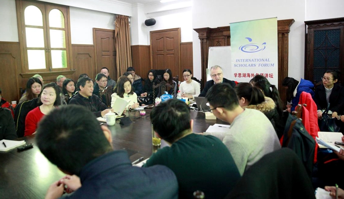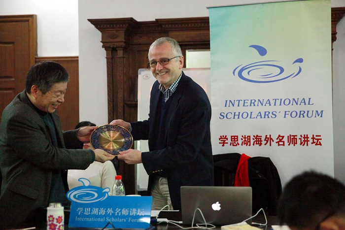 1月6日,国际知名汉学家、普林斯顿大学东亚系主任柯马丁(Martin Kern)教授做客“学思湖·海外名师讲坛”,在我校国家重点学科——比较文学与世界文学研究中心作了题为“文本勘断与中国政治哲学的起源:《尚书》研究新动向”的学术讲座。讲座由郭西安副教授主持,学科负责人刘耘华教授以及校内外众多师生前来聆听。人文与传播学院副院长詹丹教授代表学院向柯马丁教授赠送了“学思湖海外名师讲坛”纪念铜盘及印章。