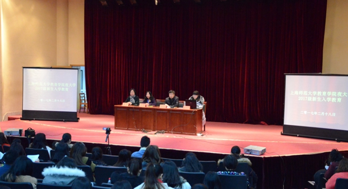 2月18日至23日,在副院长盛爱军带领下,夜大学管理办公室全员出动与视导员一道分赴闸北、市中、申洋、成才和金山等教学点和校内各二级学院参加2017级新生开学典礼,开展新生入学教育。盛爱军在教育学院新生入学教育宣讲中通过对学校历史和现状的介绍增强了学生的自豪感、自信心和责任感;同时他对夜大学新生提出了两点希望:一是懂感恩、有责任;二是有梦想、够自信。他祝愿夜大学学生都能成为道德高尚、身体健康、学业有成、生活幸福的公民!夜大学相关管理人员在新生入学教育中对夜大学整体教学管理流程作了详细说明,既为学生整个学习期间办理各类事务提供了方便,也让学生了解到遵守夜大学规章制度的重要性。