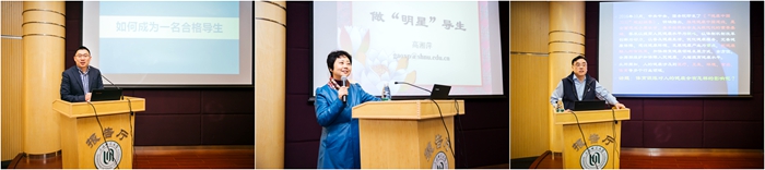 专题培训现场,我校教务处处长高湘萍通过引导性的问答和经典实例分析,向导生们重点讲解了新生入学需求分析,导生工作的“趋”与“避”等问题,鼓励广大党员、入党积极分子争做“明星”导生。校团委书记史佳华通过精准的数据分析,和导生探讨如何提升工作实效,如何适度地“导”,如何有针对性地解决问题。体育学院院长蔡皓教授和导生们在现场进行团队互动训练,并向导生们讲解了团队合作、体育锻炼和心理健康的相互作用和重要意义,介绍了健康中国2030背景下体育锻炼的重要意义。