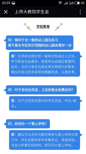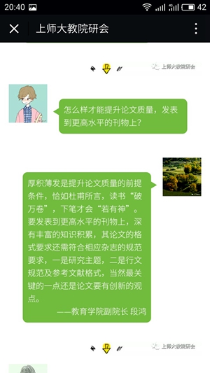 4月16日,经过前期精心准备,教育学院“教院知乎”微信平台正式开通了。该平台通过学生提问、学院教师跟进作答的形式,以学生喜爱的“时代感”的话语体系,营造了“代入感”的教育情境,实现了“收获感”的育人成效。首期推出的“教院知乎”分成研究生和本科生两个版本,涉及学术、思想、课余生活、情感、求职等丰富内容,给予学生个性化和精细化的成长指导。“知乎”平台的开通,实现了师生之间、线上线下、课堂内外的相融相通、一呼一应,有呼必应,应中解惑,应中引领。