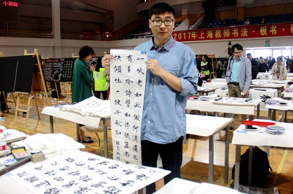 4月22日,由上海市教育工会主办的2017年上海教师书法·板书·钢笔字·中国画大赛在上海市市第二工业大学举行。来自上海市教育系统39所高校、14个区县、32个中职校共计563位教师选手,分别参加书法、板书、钢笔字、中国画4个比赛项目中年组和青年组的比赛。我校教育学院青年教师赵瑞参加了书法高校青年组的比拼,在本组35名选手中排名第6,获得三等奖。