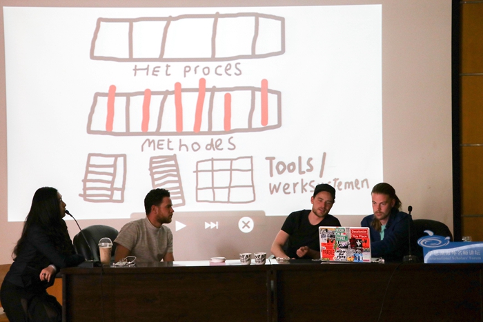 设计师圭多·德·波尔首先发言,强调了设计的过程远比结果重要。作为一位字体设计师,他用自己的学习生涯和工作经历向大家展示了他对设计的理解。第二位演讲的设计师是文森特,他的海报设计2014年获欧洲设计奖铜奖,2015年Studio AIRPORT系列海报获欧洲设计金奖。在讲座中,他展示了大量的手绘字体作品,强调了手绘在设计中的基础性地位和作用。同时说明了手绘是一种方法,阐释了它的多样化表现形式。文森特通过展现大量的肌理手绘作品,展示创作中的严谨的手法、精致的落笔和收笔,显现出一位字体设计师对文字应有的尊重和热爱。第三位出场的普鲁克·普拉茨曼设计师用诙谐幽默的开场白吸引了听众的注意。不同于前两位设计师,普鲁克在轻松诙谐的氛围中展示大量的设计作品,他的设计作品就像他的性格一样丰富有趣、具有人格魅力。