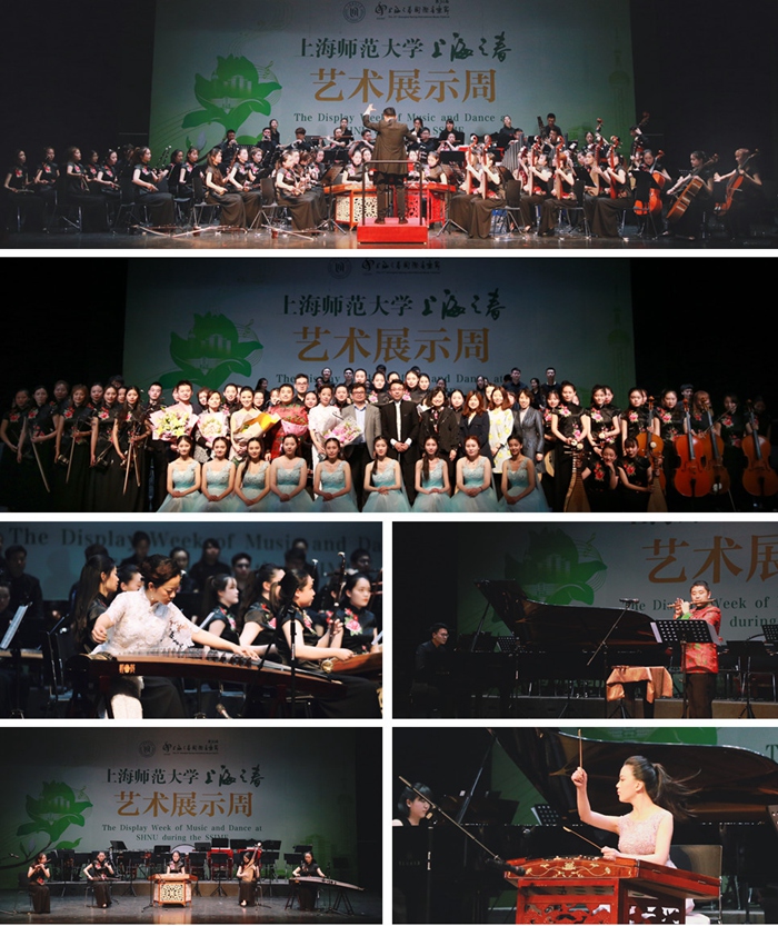 开幕音乐会以“春之乐”为主题,由上海师范大学青年民族管弦乐团、玉兰筝团、韶琴室内乐团及音乐学院师生共同演出。音乐会在上海师范大学民族管弦乐团演绎的《大音华章舞之“秧歌”》中拉开序幕。整场作品体裁多样,形式新颖。《苏提漫步》与《欢沁》皆为传统丝竹乐编制,却呈现了截然不同的曲风,前者遵循传统江南丝竹的风格与意境; 后者则加入了康佳鼓,节奏灵动、富有现代感。由韶琴室内乐团演奏的《关外之乐》、《韶琴邦》萦绕着西域风情,映衬出改良民族乐器独有的音色。玉兰筝团带来的《蝴蝶与蓝》是一首兼具流行与传乐风的新民乐作品。由音乐学院副院长明虹副教授创作,刘扬、佘世晨老师演奏的竹笛、钢琴二重奏曲《佳节》,将传统曲调与西方音乐技巧相结合,充分展示了竹笛的个性和中西交融的音乐语言。扬琴与室内乐作品《狂想曲》由音乐学院青年教师桂好好主奏,其精湛的演奏技艺、乐手间默契的配合,完美演绎了这首具有世界音乐风格的新作,博得了满堂喝彩。在特邀指挥家姚申申的执棒下,上海师范大学民族管弦乐团演奏了三首各具特色的作品。古筝协奏曲《枫桥夜泊》由宋小璐副教授担任古筝独奏,古筝与乐队的音响时而对峙、时而交融,呈现出中国古典山水画般的色彩和诗意。《丹凤朝阳》是乐团首演的新作,素材取自于传统乐曲《百鸟朝凤》,作品通过错落有致的织体变化和一系列器乐变奏,充分体现了民族管弦乐队磅礴的气势和丰富的层次感。最后一曲《龙腾虎跃》取材民间吹打乐,其中精彩的华彩“鼓段”将整场音乐会的气氛推向了高潮。