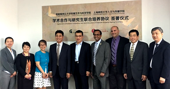 5月8日,人文与传播学院院长陈恒与密歇根州立大学传播艺术与科学学院Prabu David院长共同签署了《国际学术合作与研究生联合培养协议》。校国际交流处、研究生院、人文学院广告系和密歇根州立大学国际项目部相关负责人出席签约仪式。