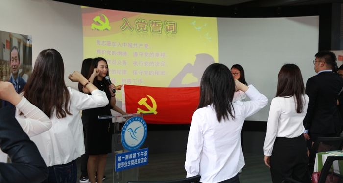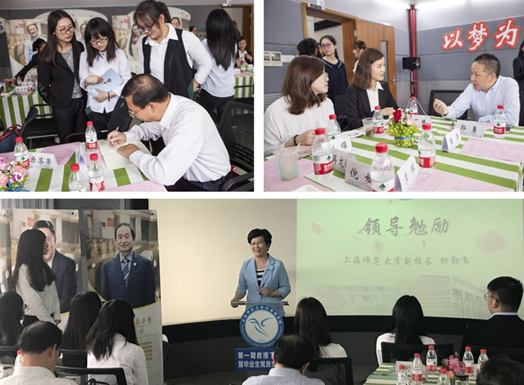 毕业生代表交流发言后,在场的毕业班党员们也在院学生工作负责人万瑾老师及院党委组织员张勤华老师的带领下重温了入党誓言,牢记身为一名党员的责任与使命。面对即将踏上工作岗位的毕业生们,在场的蔡龙权教授、陈庆勋教授、郭勇教授、蒋宇红教授、原苏荣教授和朱伊革教授纷纷送上了自己简短却饱含祝福的寄语。仪式的最后,副校长柯勤飞教授用“遇见”、“梦想”及“责任”三个词勉励在场的毕业生们。我们在师大相遇,共谱美妙篇章;我们以梦为马,砥砺前行;我们肩负责任,奋斗不息。