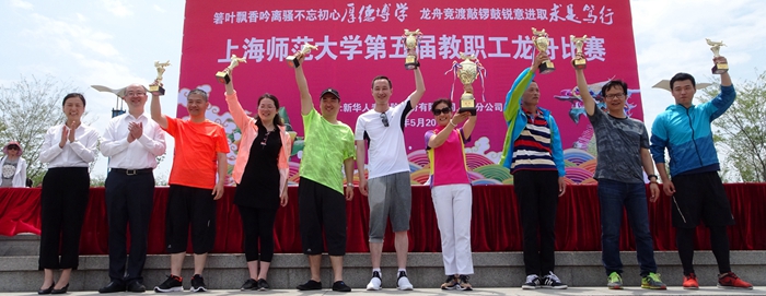 我校自从2009年举办首届龙舟赛以来,经过近十年的发展,比赛内涵不断丰富,赛制不断完善,现已成为学校深入人心的凝聚力工程品牌活动项目之一,新华人寿保险股份有限公司上海分公司还特别赞助了本届比赛。今年,我校教职工龙舟队走出了校门,代表学校参加市级比赛。在5月13日刚刚结束的上海市第八届教工运动会首届龙舟赛上,由体育学院和四附中教职工组成的代表队为学校拿下了高校A组第六名的好成绩。