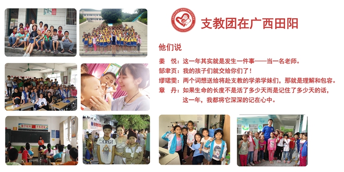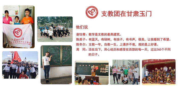 从2007年至今,学校已经先后派遣了十支研究生支教团队伍来到祖国的西部,在最需要人才的土地上挥洒汗水。去年,我校第十八届研究生支教团15名成员,也分别远赴广西和甘肃,支教一年,自教一生,用青春谱写了一曲动情的志愿之歌。近日,支教团成员结束支教生活相继返沪。 ![]() 7月5日,第十八届研究生支教团经验分享会暨第十九届研究生支教团出征仪式于徐汇举行。校党委副书记、副校长葛卫华,上海韩哲一教育扶贫基金会副理事长、秘书长韩烽火,校友会、教育发展基金会及校团委负责人出席。葛卫华在听取了第十八届研究生支教团工作汇报后,鼓励所有支教团成员作为上海师大学子一定要兼济天下,负起重任,有所作为。韩烽火也勉励支教团锻炼自身,奉献社会,保持初心,继续前行。第十九届研究生支教团将接过传承十年的接力棒,于7月下旬出发前往支教地。 ![]() 葛亦乔、金琪、章丹、郜聿页、邢冰伟、姜悦、缪珺雯、陈宵8位成员服务于广西壮族自治区百色市田阳县的四所小学。,一年的支教生活中,8名成员平均每人每周承担19.5课时的教学量,学生人数达1755名。他们积极开展助学助困、捐赠帮扶工作,帮助58名贫困家庭的学生找到资助人,累计发放资助金80030元,通过当地团县委等各种渠道募捐折合人民币54604元,受益学生达8393人。此外,在上海韩哲一教育扶贫基金会的大力支持下,他们共举办9项“千元计划”,利用千元项目资金为当地学生举办文艺科体的各类活动。他们还积极参与当地志愿服务,包括协助村镇扶贫办、攻坚办相关工作,第九届中国-东盟(百色)现代农业展示交易会、“全民健身健步走”等志愿服务。 ![]() 陈冬尔、张力夫、谢怡青、张雨浓、陈美子、周同、庄燕7名成员分别服务于玉门市第一小学、玉门市第二中学等4所学校,教授英语、数学、美术等课程15门,教授学生人数约2750名。这一年,他们成功联络16名资助人、1家爱心企业,帮助34名受助学生,发放助学金54400元,爱心物资约两万元。此外,他们依托韩哲一教育扶贫基金会的千元计划,组织策划学校大型文体活动十余次,全面丰富了当地学生的课余生活。同时,他们积极融入当地,参与魔山越野赛、中秋慰问演出、西部经济开发研讨会等志愿服务,并与当地的老师及高中生开展座谈,分享自身的学习经验及教育感悟。他们的付出受到当地认可,事迹也得到玉门市广播电视台、“玉门在线”微信平台、“爱玉门”等媒体的采访报道。 ![]() 十年支教,爱心传承,我校97名研究生支教团志愿者累计服务20万小时。内蒙古、广西、甘肃……师大学子将青春、知识、爱心奉献在祖国西部。十年支教接力,他们深入基层、服务基础教育,将个人命运与祖国发展紧密结合。 漫漫支教路,迢迢志愿心。相信新一届支教团将继续用热情和专注,践行青春奉献西部的誓言,也祝愿他们在未来一年的春华秋实中,一路成长,一路收获。 (供稿、摄影:校团委、研究生支教团 编辑:新闻中心) |