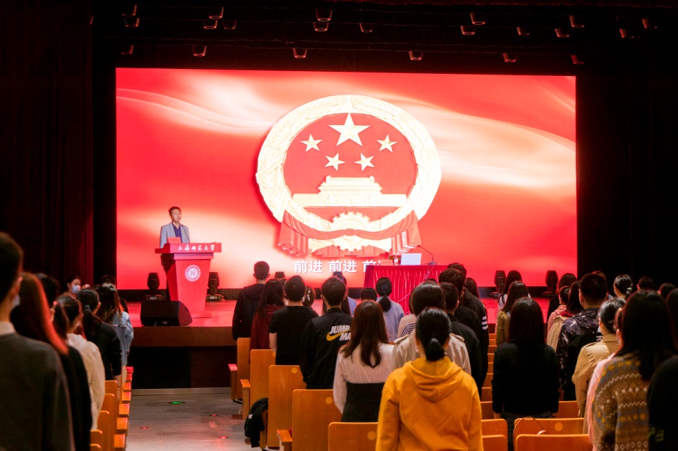 上午的学生党员大会在东部音乐厅举行。学院党委书记盛况,党委副书记、副院长张皓月,全体辅导员以及190余名本科、研究生党员出席会议。会议在嘹亮的国歌声中拉开了序幕。