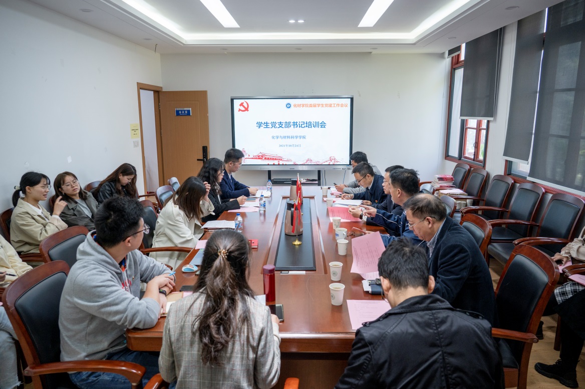 10月24日下午,化材学院学生党支部书记培训会在徐汇体化楼224C会议室举办。校党委组织部副部长杨成龙,化材学院党委书记盛况,党委副书记、院长杨仕平,副书记副院长张皓月,副院长刘国华,教工第三党支部书记郎万中等和全体学生党支部书记参加会议。