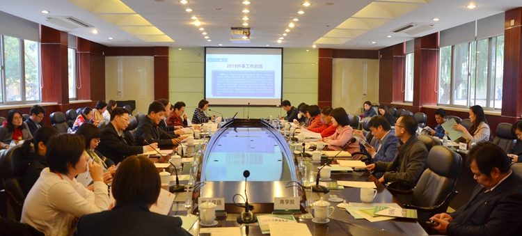 11月28日下午,学校外事工作会议在外宾楼101召开,副校长蒋明军出席会议,总结 2018年学校国际交流与合作,并对2019年工作提出了具体要求。二级单位外事负责人和学院外事助理出席会议。