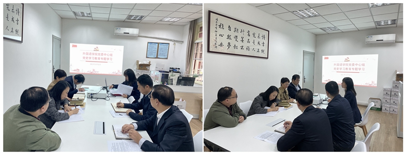 10月22日下午,外国语学院党委理论学习中心组开展第八次党史学习教育专题学习,深入学习贯彻习近平总书记“七一”重要讲话精神,专题学习习近平总书记在纪念辛亥革命110周年大会、中央人才工作会议上的重要讲话精神,以及新修订的教育法中党的教育方针最新表述。学院党委委员、班子成员全部出席了此次学习,会议由外国语学院党委书记李凤主持。