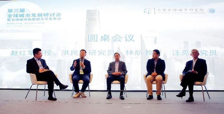 最后,上海社科院副院长干春晖教授主持了圆桌会议环节。上海师范大学商学院副院长赵红军教授认为当前世界的竞争就是城市的竞争,上海全球城市研究院指数报告的持续发布讲述了中国城市发展的故事,在国际话语权中将会占据一席之地。上海市地方志编纂委员会办公室主任、党组书记洪民荣研究员认为上海全球城市研究院系列成果的发布向社会和学界展现了全球城市的发展趋势、全球城市发展的差异性、全球城市发展的前瞻性等特征和规律。杭州师范大学城市国际化研究院副院长林航教授认为《全球城市发展指数2020》和《全球城市发展指数2019》的发布弥补了现有其他国际机构指数的不足,比如加入了工业生产或制造业的指数等,同时反映出中国城市崛起的事实。上海市流通经济研究所所长汪亮研究员认为《全球城市发展指数2020》中连通性指数体现出全球城市的本质,即全球城市对离岸资源的配置能力。上海要成为能够吸引大量优质国际产业资本的战略门户,充当本土跨国公司走向国际的战略桥头堡,必须提高连通性、增强对全球资源的配置能力。