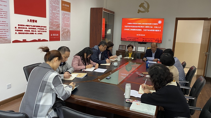10月22日,上海实验学校党委中心组举行党史学习教育第九次专题学习研讨会,全体党委委员出席会议,校党委书记马季荣主持会议。