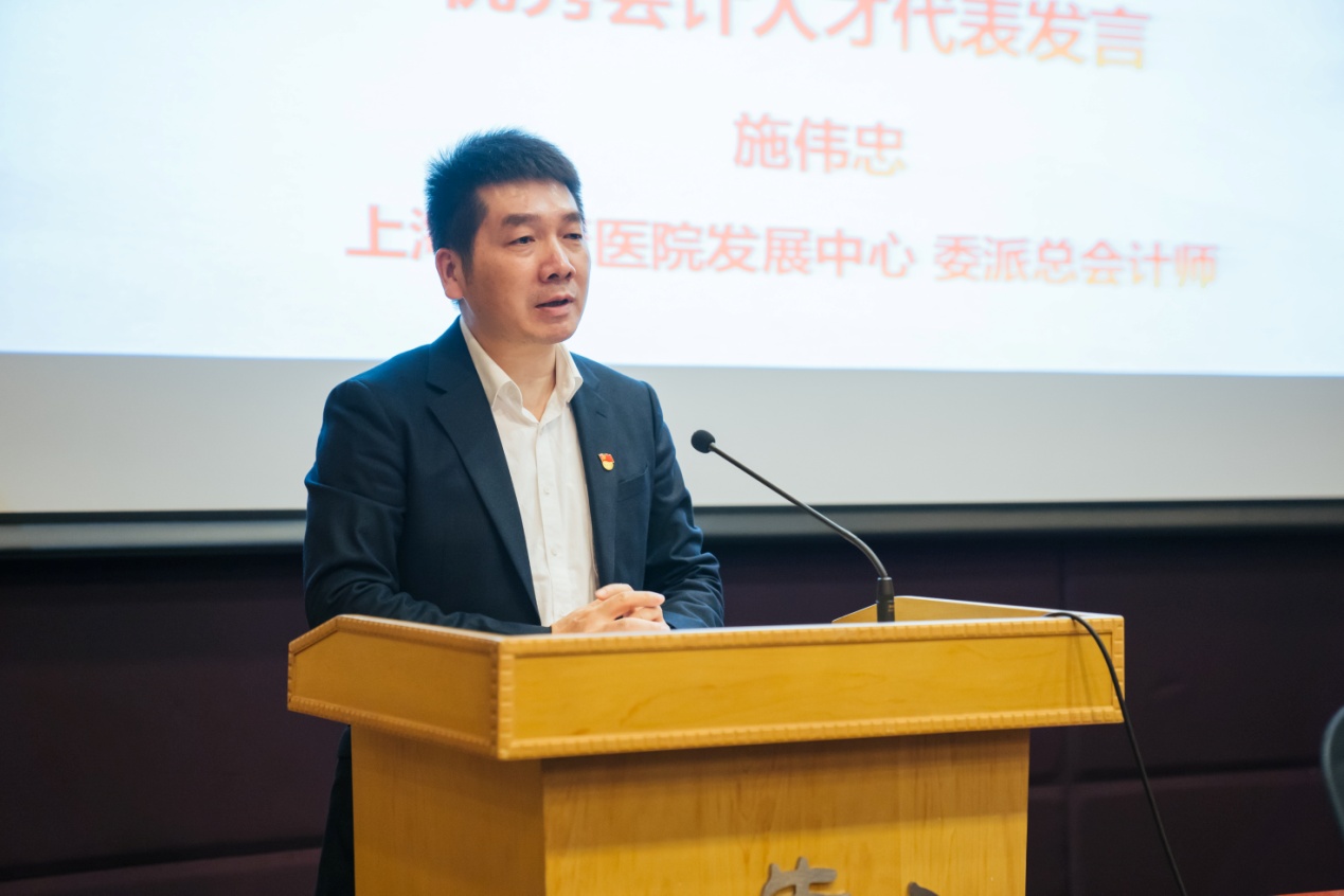 授聘仪式后,“商学院业界导师”施伟忠,作为优秀会计人才代表发言,他深情寄语同学们:在新时代的征程上,担当时代责任,勇于砥砺奋斗,收获成长的力量。